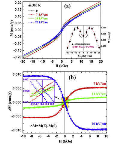 磁性的原位调制可以在“铁磁/压电”结构复合体系中通过电场诱导逆压电效应获得。在在本文中,我们报导了Ni/PMN-PT薄膜异质结构中电场对磁特性的非易失调制。主要结果有:(1)利用脉冲激光沉积(PLD)方法成功在PMN-PT铁电单晶上外沿生长得到Ni单晶;(2)实验测试结果表明了电场对磁化强度的调制达到了60%、对矫顽力调制达到了23.2%,且在很大的温度范围内电场对磁特性的调制都很明显; (3)为了分析调制机理,我们设计了组合实验,即同时测试了在不同电极化时间下的磁化强度以及拉曼光谱,结果表明了磁化强度随电极化时间的变化情况与拉曼光谱随不同极化时间的变化情况的一致性。证明了电场对薄膜微结构调制,进而影响磁性材料中的磁相互作用,也即电场通过应力效应对薄膜磁性的调制。