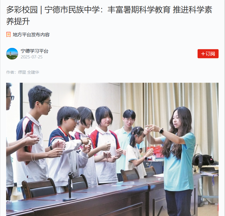 据了解,宁德市民族中学作为福建省第二批中小学科学教育特色学校,鼓励学生们充分利用暑假时间,通过观看科普视频、参观科技展馆、走访科技企业、开展家庭小实验等多种方式,不断推进学生科学素养的提升。