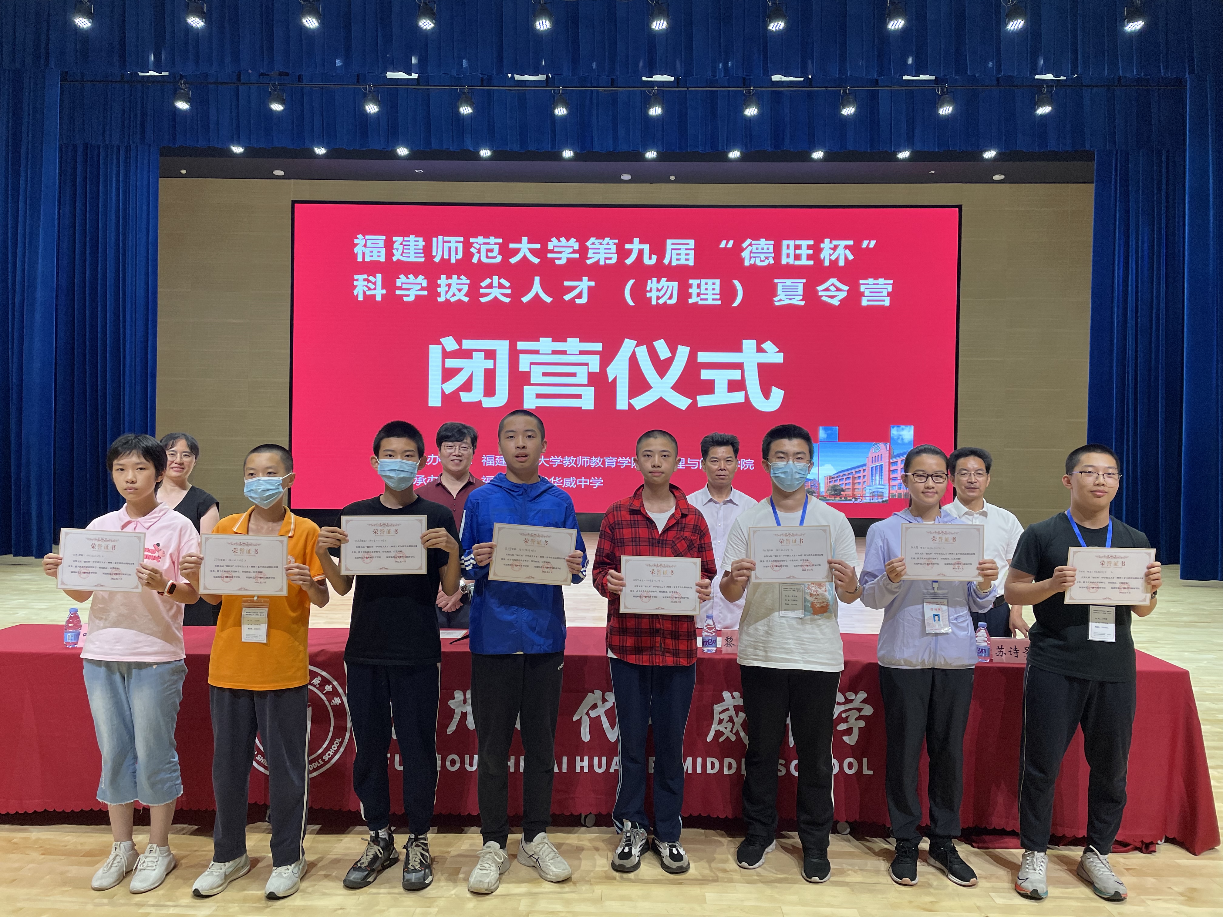近日,由我校教师教育学院与物理与能源学院联合主办的第九届“德旺杯”科学拔尖人才(物理)夏令营成功举办,近130名八年级中学生自愿报名参加了此次夏令营活动。夏令营于7月6日在福州市时代华威中学顺利开营,为期5天。