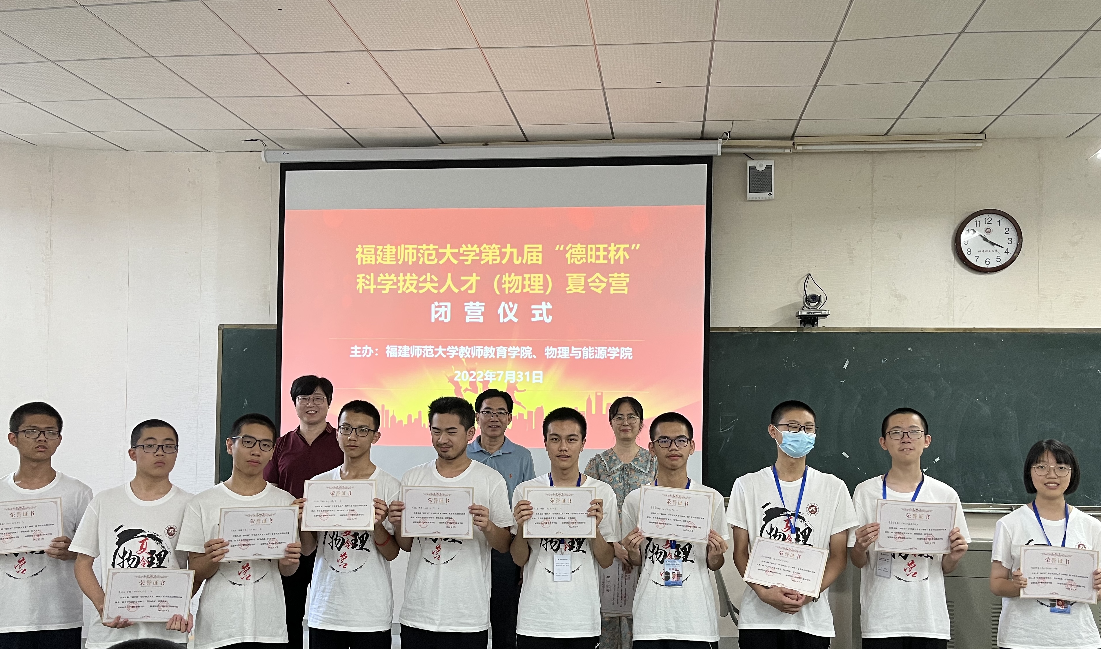 近日,由我校教师教育学院和物理与能源学院联合主办的第九届“德旺杯”科学拔尖人才(物理)夏令营(第二期)成功举办,近80名九年级学生自愿报名参加了此次夏令营活动。夏令营于7月21日在福建师范大学顺利开营,为全封闭性培训,共为期10天。