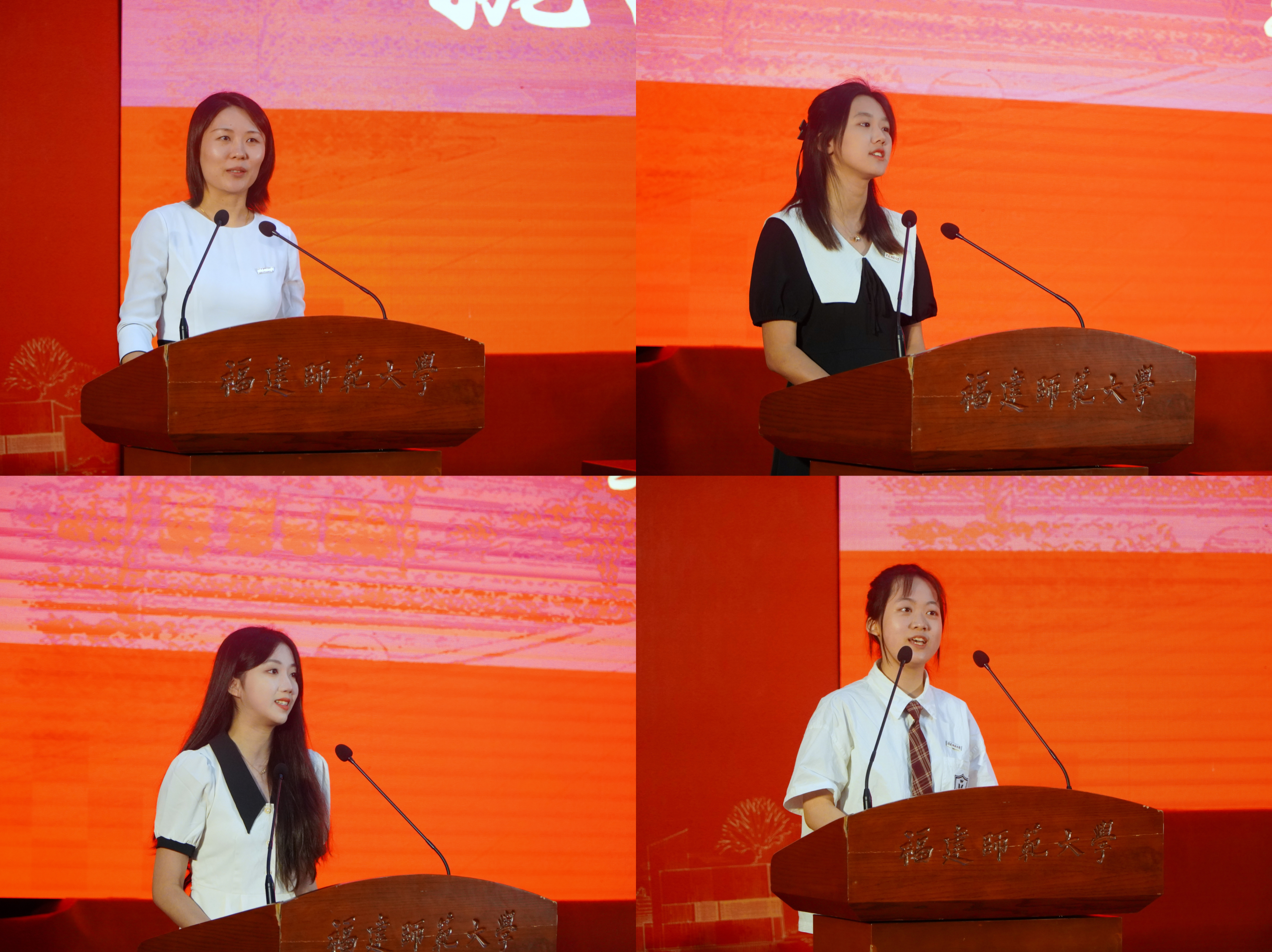 教师代表姚胡蓉副教授发言,她分享了自己在大学时期的经历和经验,并希望同学们要树立正确的人生观、学会与自己相处、培养自主学习观,做到不负青春、不负时光、努力奋斗。学院本科生老生代表程琳、研究生新生代表张曼佳、本科生新生代表翁铭均先后发言。