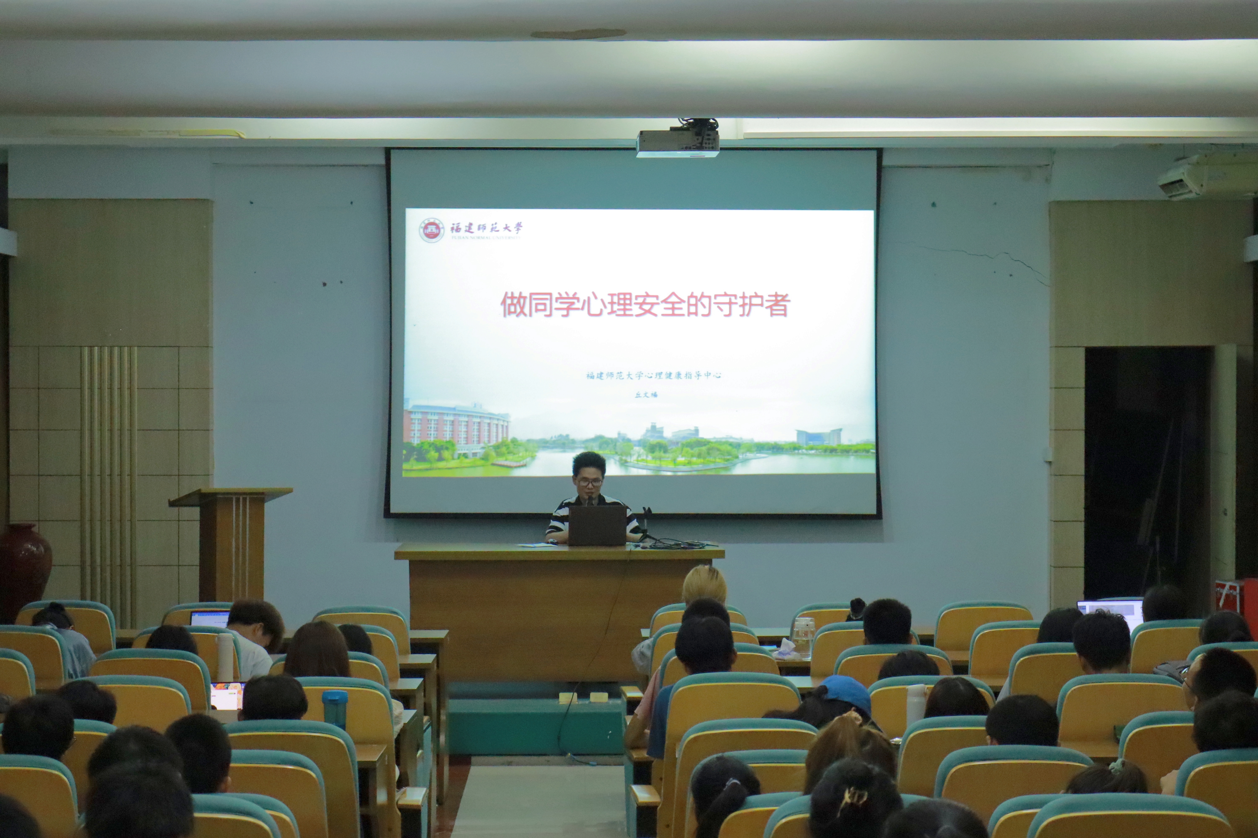 办公室丘文福老师任主讲。学院各宿舍长共计一百五十余人参与培训。培训由学院心理健康工作站站长华美花主持。