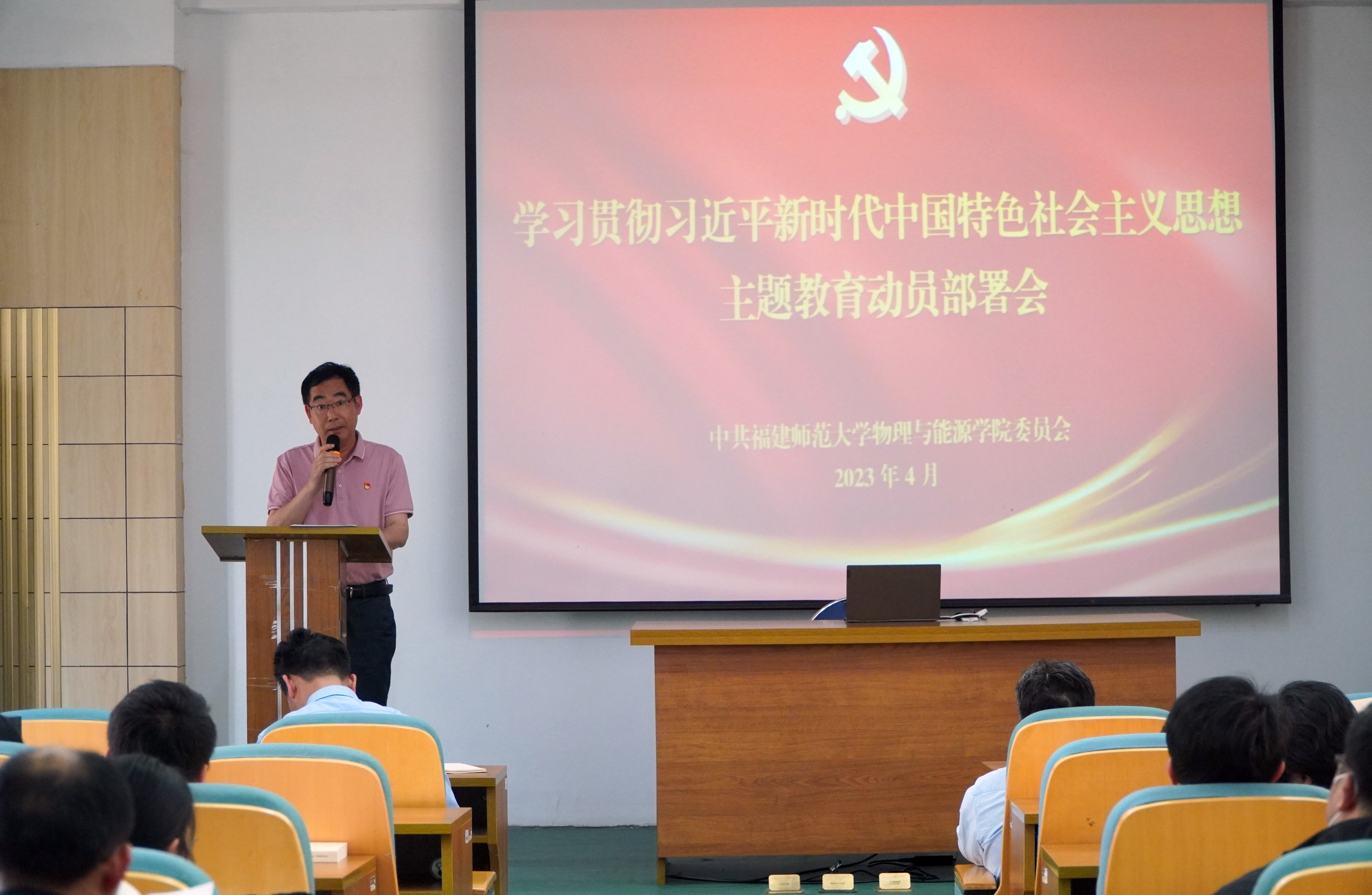 4月28日下午,我院召开学习贯彻习近平新时代中国特色社会主义思想主题教育动员部署会。学院党委班子成员、全体党员参加会议。院党委书记、院学习贯彻习近平新时代中国特色社会主 义思想主题教育领导小组组长林玉辉作动员部署,院党委副书记黎胜禄主持会议。