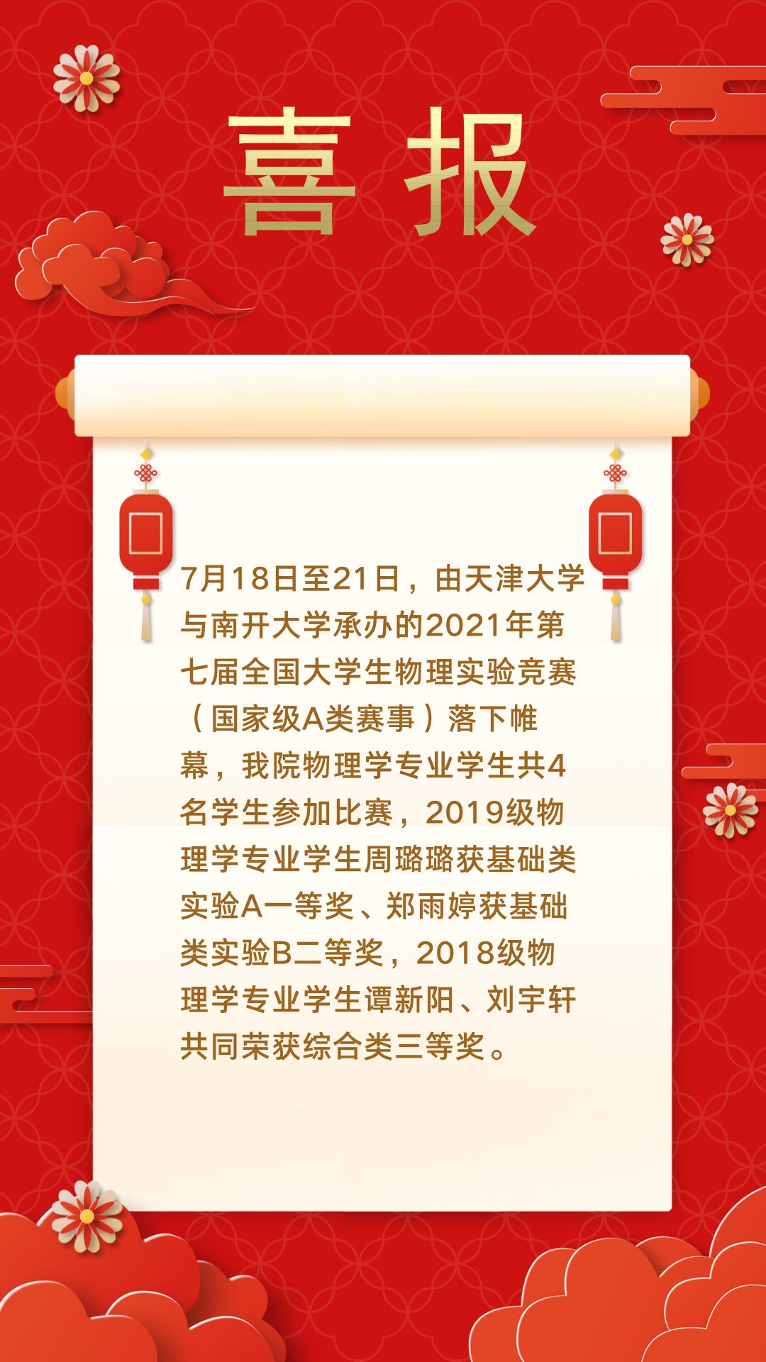 喜报——我院学生在2021年第七届全国大学生物理实验竞赛(国家级A类赛事)中斩获佳绩