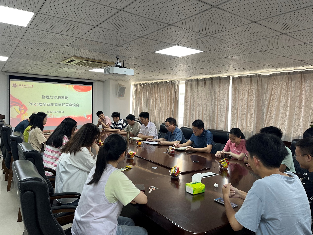 6月15日上午,我院于理工楼主楼301召开“奋进新征程·逐梦新时代”2023届毕业生党员代表座谈会。学院党委林玉辉书记、黎胜禄副书记,学院团委书记、2023届研究生毕业班辅导员伏旭斌,本科毕业班辅导员吴晓静及2023届毕业生党员代表参加本次座谈会。