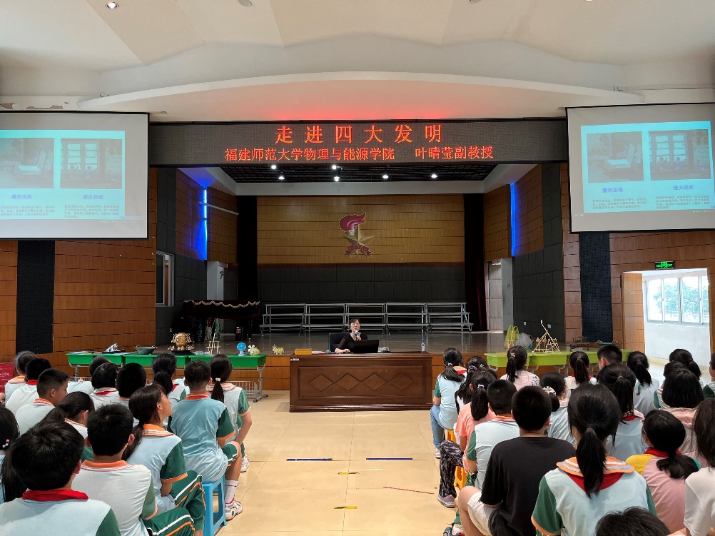 6月19日,我院教师叶晴莹应邀带领我院青年志愿者赴福建师范大学附属小学开展“无边界课堂”活动。活动中,叶晴莹老师为六年级学生做了“走近四大发明”的讲座,获得师生一致欢迎。