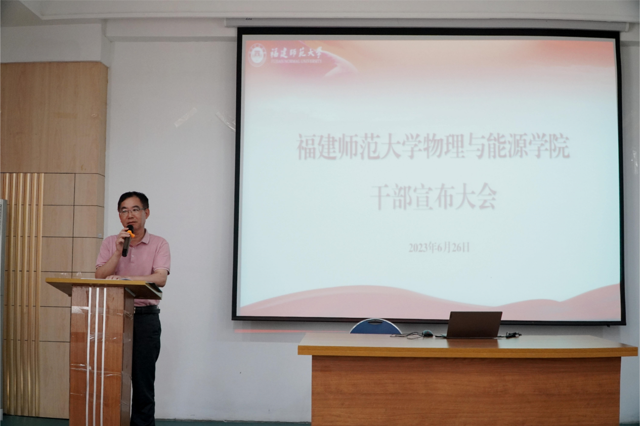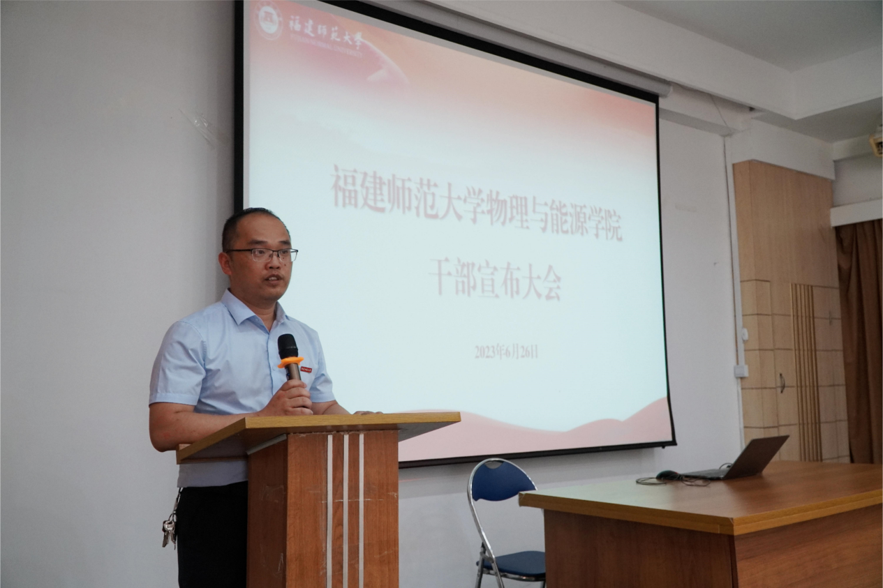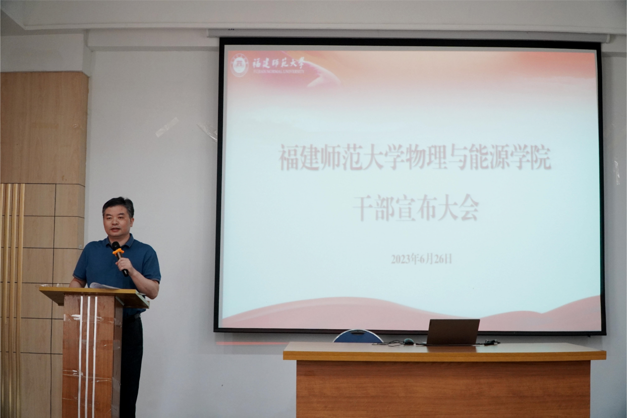 6月26日下午,我院于理工楼3#102召开干部宣布大会。校党委常委、副校长吴剑锋,校组织部副部长阮传瞰,物理与能源学院全体教职工参加了会议。