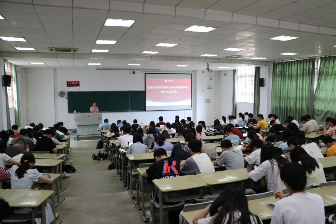 7月3日,我院在笃行楼1-115教室召开本科生2020级物理学专业教育实习动员会。学院党委书记林玉辉,副院长、教育实习工作领导小组组长陈水源教授,物理系主任叶明勇教授,系副主任、专业负责人张健敏教授,系副主任叶晴莹副教授,教育实习领导小组副组长林钦副教授,各实习队指导老师及2020级物理学专业全体同学参加了动员会。会议由本科生2020级辅导员李叶晨主持。