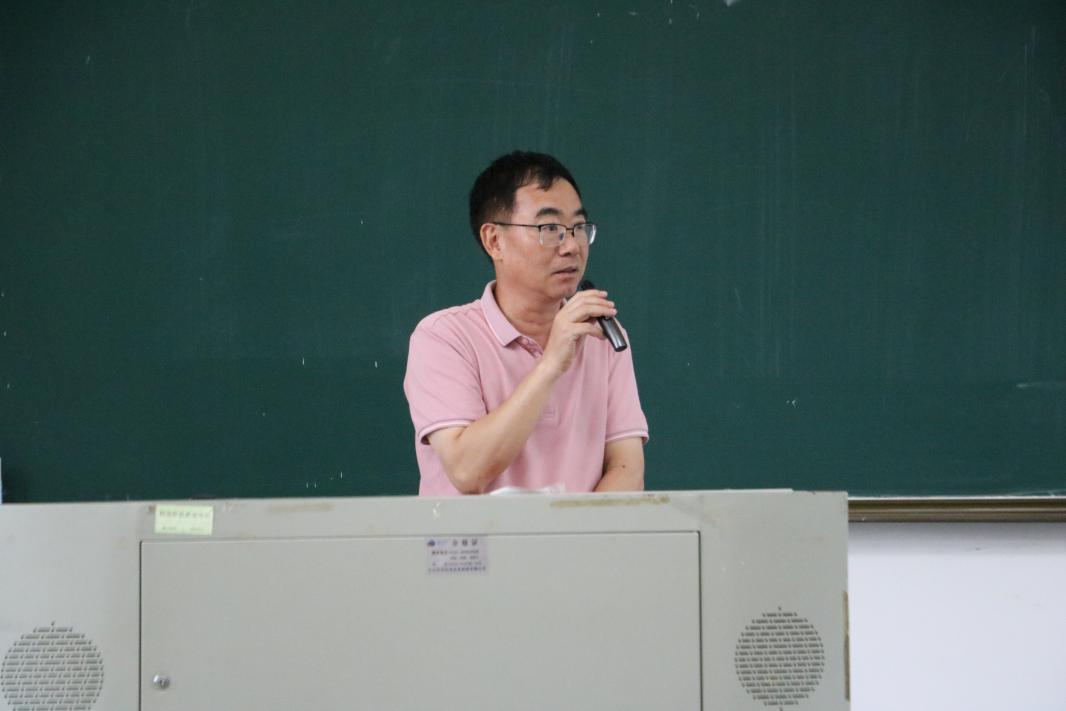 林玉辉书记作总结讲话,他希望同学们以饱满的热情投入到专业实习中,真正做到学有所思、学有所获、学有所进,发扬物能学子求实上进的精神,圆满完成实习任务。