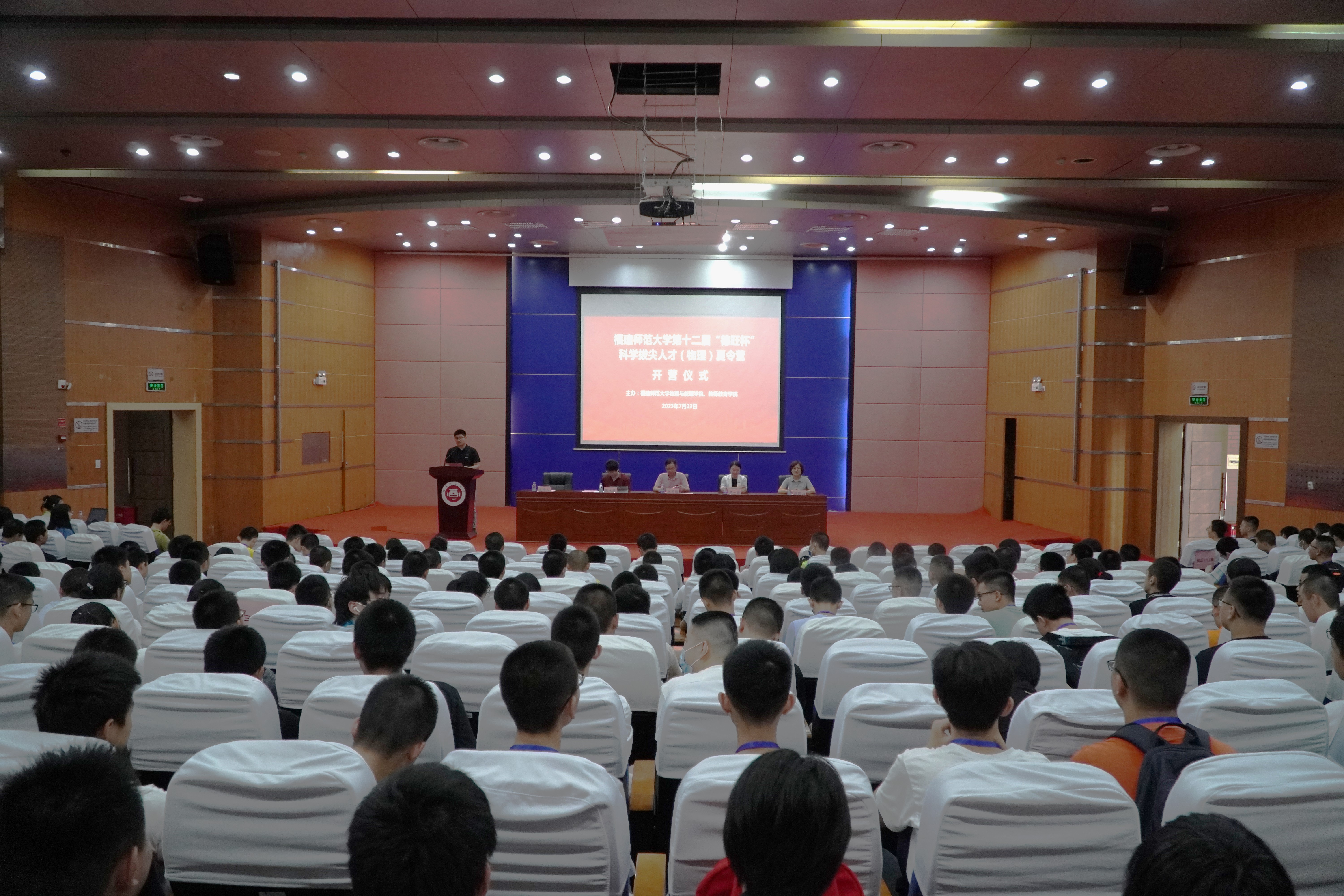 近日,由我校物理与能源学院和教师教育学院联合主办的福建师范大学第十二届“德旺杯”科学拔尖人才(物理)夏令营开营仪式在旗山校区学术大讲堂举行。物理与能源学院党委书记林玉辉,教师教育学院党委副书记黄一菁,物理与能源学院副院长、夏令营营长陈水源教授,教师教育学院办公室主任赵碧山,以及300余名夏令营学员参加了开营仪式。
