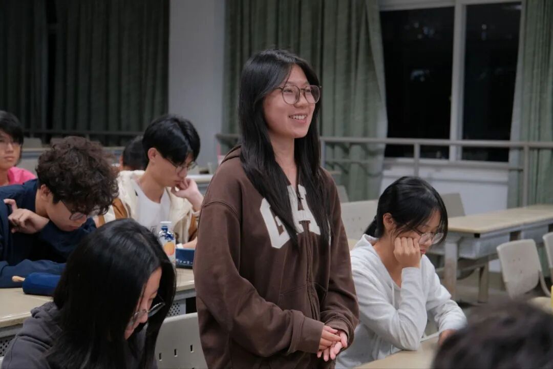 观影前,吴涵锜将影片中的“550系列量子计算机”对应现实中“九章”“祖冲之号”量子计算原型机,将“太空电梯”对应我国“天梯计划”的前期研究。她用图文形式科普“影片中的科技不是空想,而是我国科技工作者正在攻坚的方向”,让青年先理解“科技强国的现实基础”。吴涵锜给每位同学发放“科技-担当”关联卡,卡片左侧列“影片科技行动”,右侧留空让同学们填写“我的对应行动方向”。观影结束后,支部成员围绕“观影中记录的科技场景”发言,在交流互动中深化对前沿科技的认识。