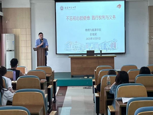 2025年11月9日,我院面向入党积极分子组织开展了“不忘初心担使命,践行权利与义务”主题教育活动,由团委书记伏旭斌担任主讲。活动紧密结合积极分子的培养要求,系统解读了党员的权利与义务,并联系宪法法律赋予公民的基本权益,引导大家深刻认识在享有受教育权、参与权等的同时,更需自觉履行遵守党纪国法、校规校纪以及服务群众、奉献社会的责任。讲座强调权利与义务的统一性,鼓励全体积极分子在行使权利时牢记身份、扛起责任,将个人追求融入党和人民的事业之中。此次活动进一步强化了积极分子的组织观念、纪律意识与使命担当,为其成长为合格党员奠定了坚实思想基础。