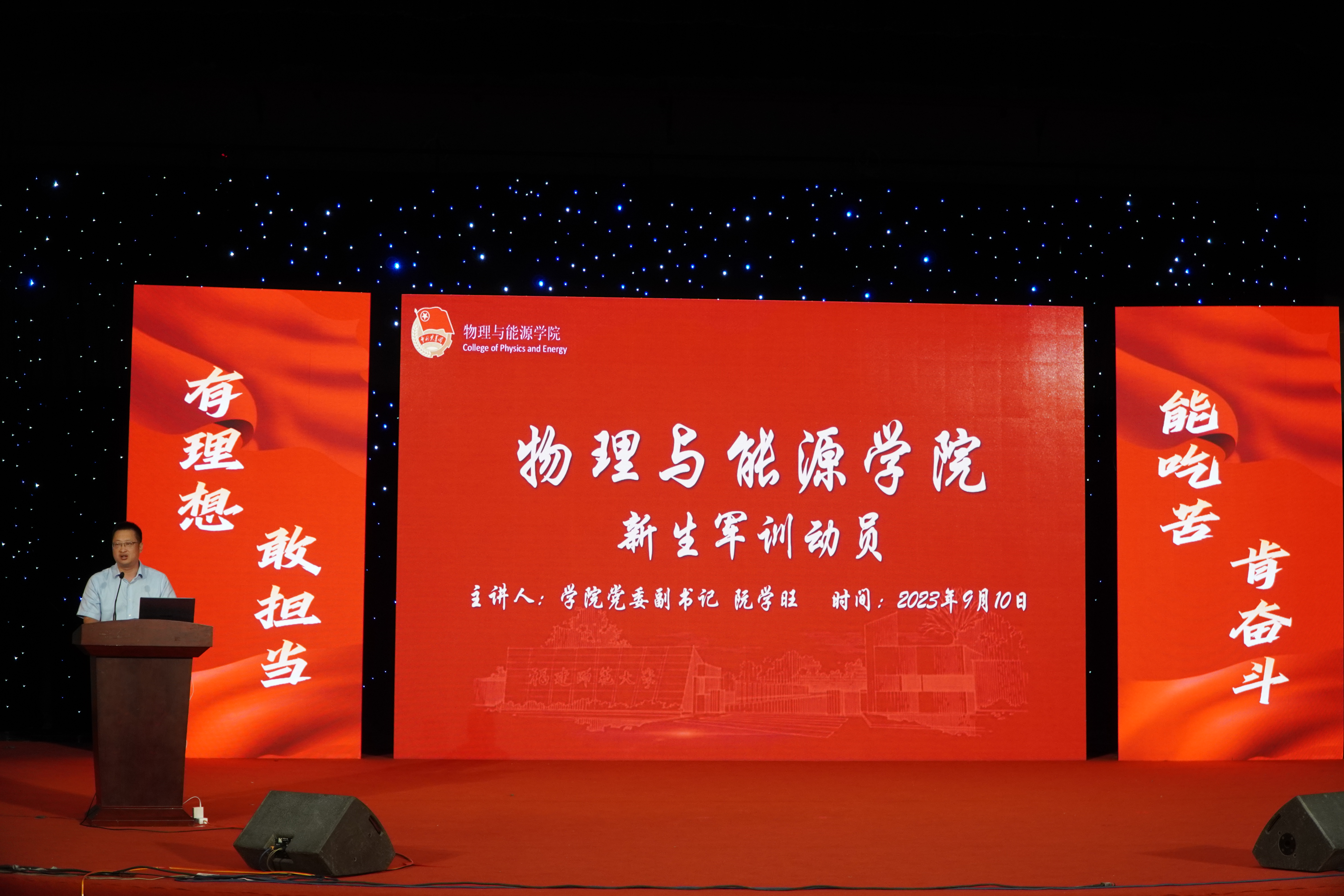随后,学院党委副书记阮学旺进行了军训动员,为即将开展军训的本科新生鼓劲加油,希望同学们团结奋斗、刻苦训练,服从命令、听从指挥,磨炼意志、力争优秀。