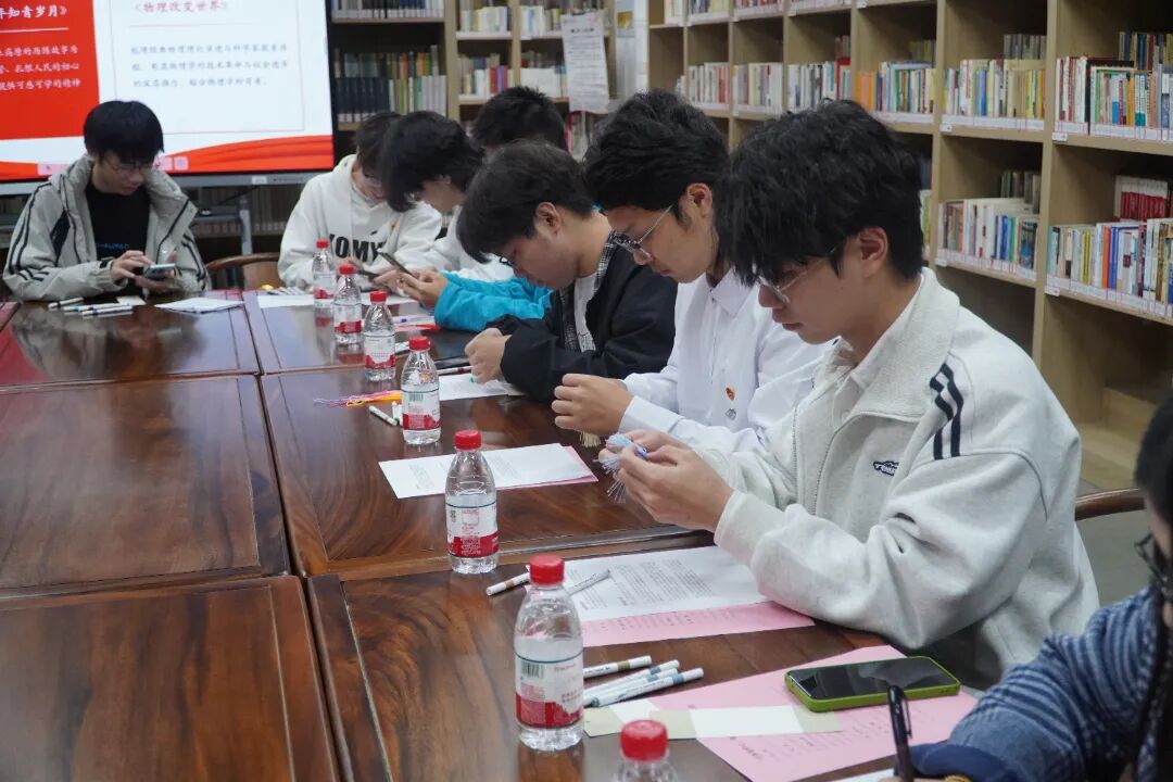 在创意环节,团员们将书中经典语录与物理专业知识结合,现场制作特色书签,并请优秀作品创作者上台分享了设计理念。