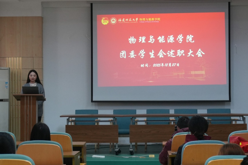 会上,2025-2026学年团委学生会各部门负责人依次上台述职,他们围绕工作内容、取得成效、存在问题等方面,详细汇报了部门工作的各项情况并进行总结反思。