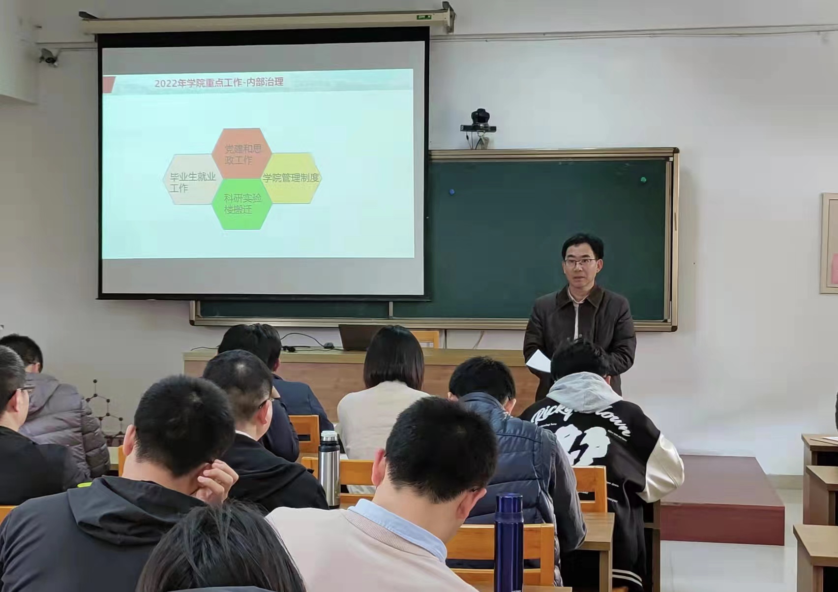 3月9日,学院在理工楼3#-303召开全院教职工大会,部署2022年学院工作。会议由学院党委林玉辉书记主持。