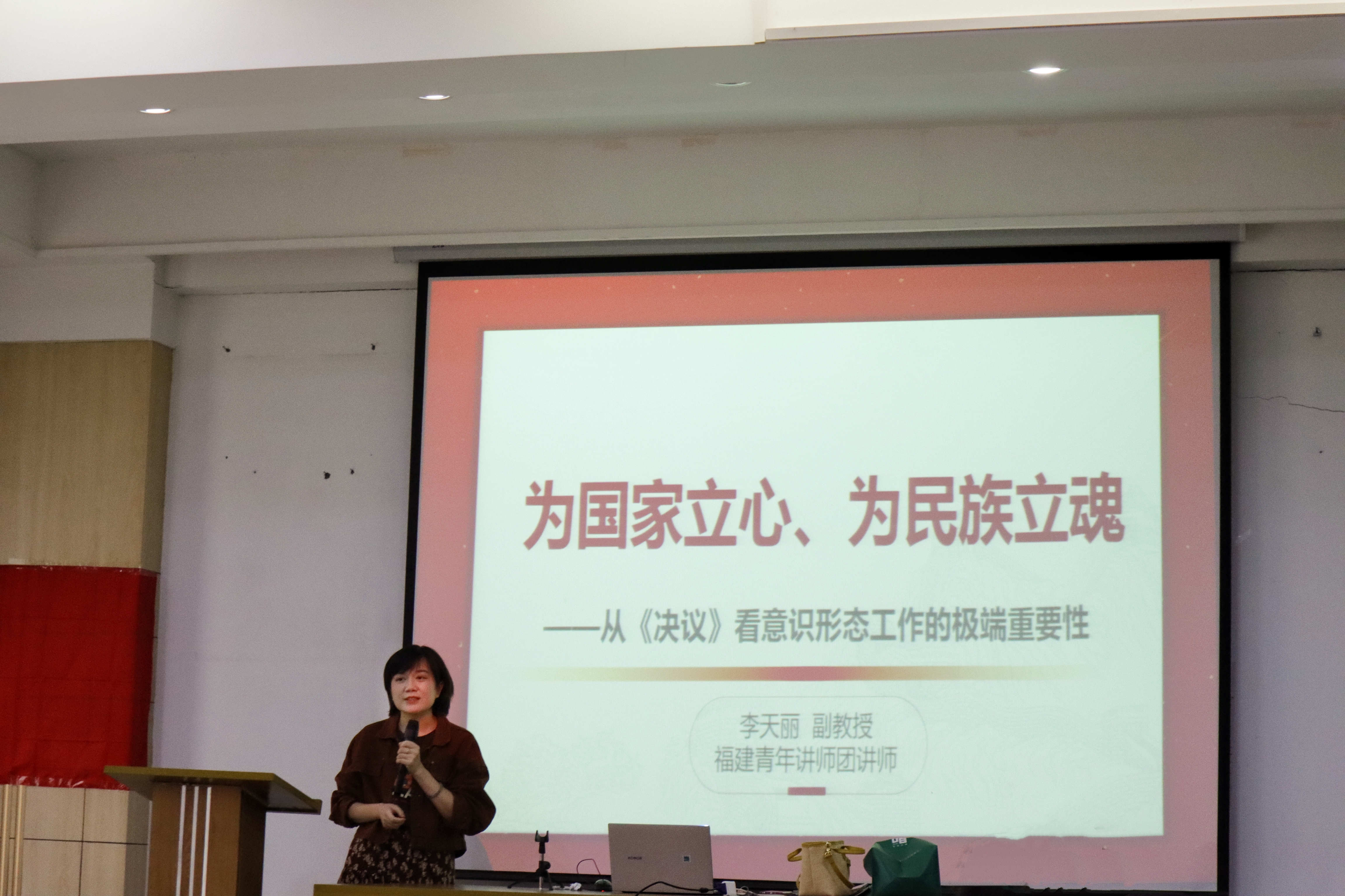 4月16日,福建青年讲师团讲师李天丽副教授于理工楼3-102为我院入党积极分子和发展对象开展了以“为国家立心,为民族立魂”为主题的专题党课,全体入党积极分子及发展对象参加了本次党课。