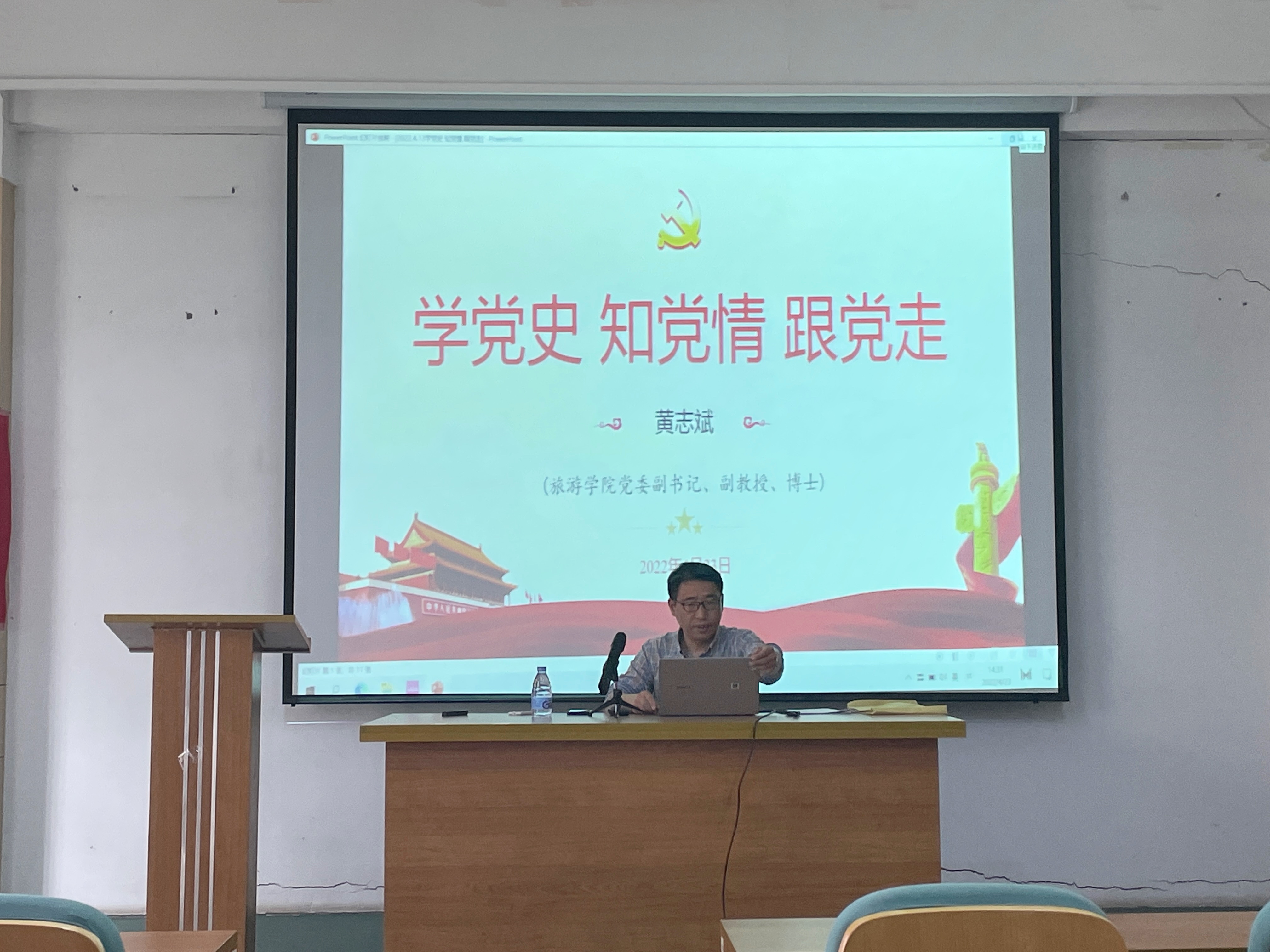 4月23日,旅游学院党委副书记黄志斌副教授于理工楼3-102为我院入党积极分子和发展对象开展《学党史 知党情 跟党走》专题党课,全体入党积极分子及发展对象参加了本次党课。会议由学院团委书记伏旭斌主持。