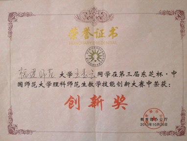 学生获得中国师范大学理科师范生教学技能创新大赛最高奖“创新奖”