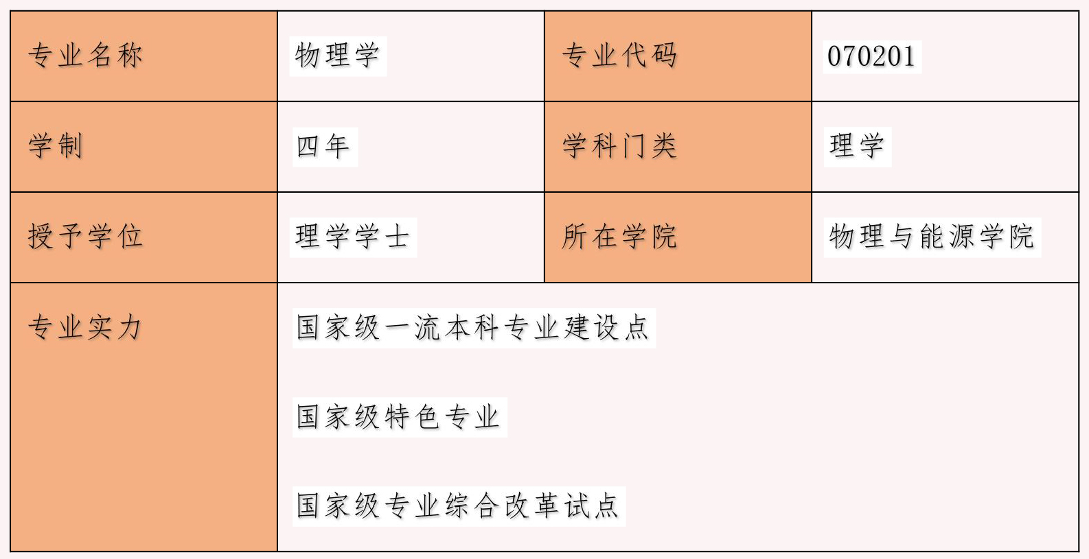 物理学专业是我校最早设置的专业之一,至今已有100多年的办学历史,经几代物理人的努力,已经在国内树立了很好的品牌。是国家级特色专业、国家级专业综合改革试点专业以及第一批国家级一流本科专业建设点。本专业同时开展“物理学拔尖创新人才培养计划”和“卓越中学物理教师培养计划”本科人才培养。
